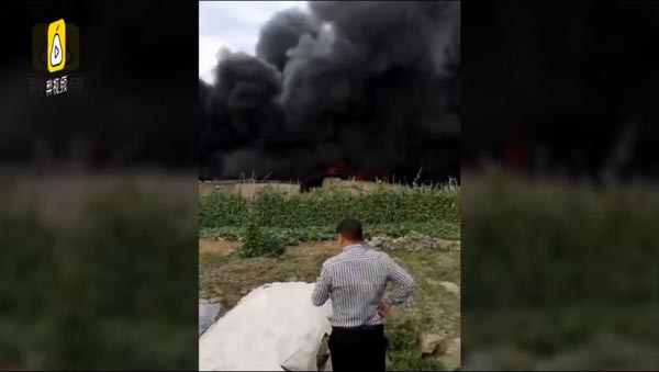 实拍绍兴一家纺厂大火浓烟遮天秒变黑夜现场视频