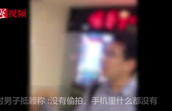 5月31日晚,孙女士告诉记者,当时在电梯上只有三个人,她和男朋友在前面,身后一男子以弓字步站立,手机放在膝盖上,手机摄像头朝上。被自己男朋友发现以后,当场抓获。当时男子还抵赖称,没有偷拍,手机里什么都没有。