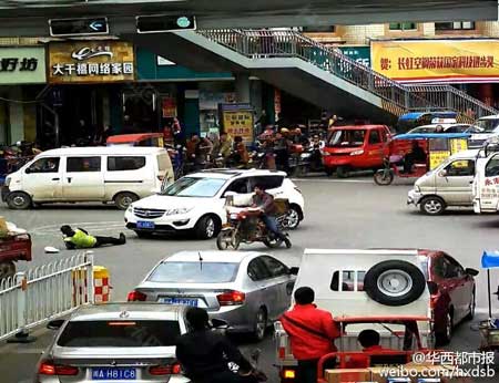 3月20日下午2时40分许,资阳市安岳县安乐路口,一辆白色长安越野车在等红灯时,驾车男子被执勤协警发现浑身酒味。协警要求男子驾车靠边接受检查,男子却开车将协警撞倒在地,并对协警大骂:“穿狗皮的宝儿,弄你狗日的。”后经查证,驾车男子为安岳城区某工商所所长刘涛,当时身着工商制服。