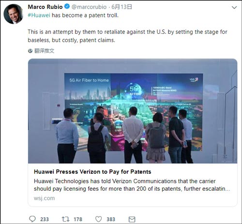 (原标题:为阻止华为收专利费,美国反华议员卢比奥出损招)