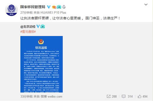 (原标题:北京边检通报曾轶可事件情况,国家移民管理局官微:国门神圣,法律庄严)
