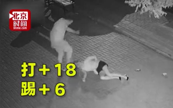实拍女孩深夜遭男子凶残踢打殴打扒衣拖行现场视频