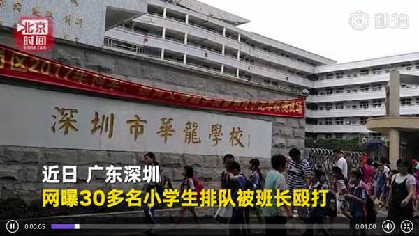 网曝深圳龙华学校30多个小学生排队被班长打现场视频