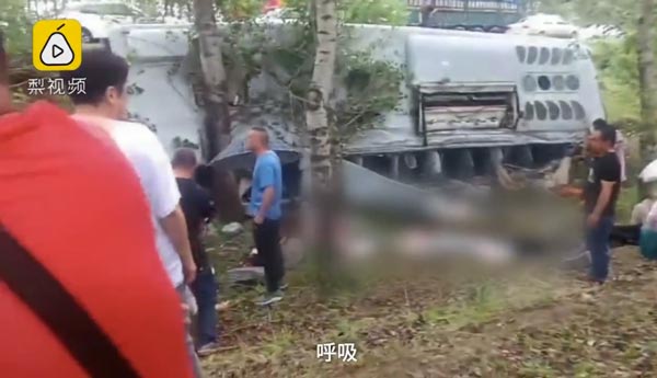 实拍黑龙江大庆一客车疑遭擦撞翻下公路致2死多伤视频