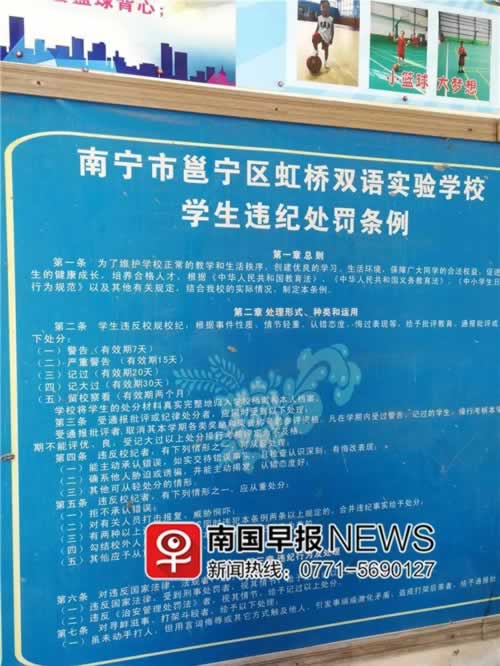 位于南宁市邕宁区蒲庙镇的虹桥双语实验学校,注重以严治校,甚至存在一些体罚情况,招致部分孩子和家长的不满,进而导致一些学生离校转学。