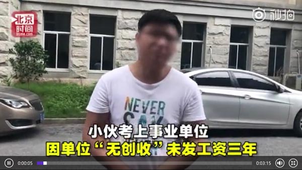 (原标题:小伙考上事业单位 因单位“无创收”未发工资三年)