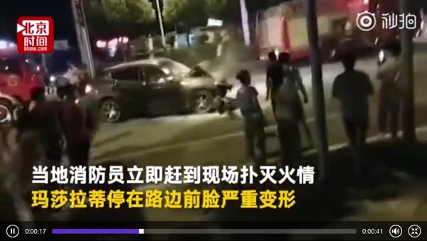 北青报记者注意到,多段现场视频显示,撞上宝马车之前,谭某驾驶的玛莎拉蒂曾与多车发生剐蹭,还曾被困于两车中间,但一直试图驶离。在周围多名群众在场的情况下,谭某并未停车,却仍然驾车离开。在东环路与永兴街交叉口,谭某驾车赶到时并未理会路口的红灯,而是径直撞上停在路口处等红灯的宝马,宝马车被撞离之后瞬间起火。