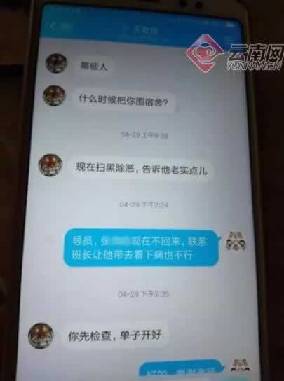 王某母亲向记者提供了一张她儿子和辅导员王老师的QQ聊天记录截图显示,王老师曾于4月29日关切地询问王某“哪些人”“什么时候把你围宿舍”,并告诉王某“现在扫黑除恶,告诉他老实点”。王某也曾向老师说:“老感觉还会被别人打,别人老是针对我这样。”
