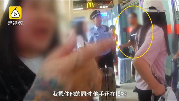 2019年7月9日,山东青岛,一女子在青岛火车站进站时,突然遭一男子从其侧面伸出“咸猪手”,袭击了她的胸部。周围旅客帮助将该男子抓住,此时,男子仍继续伸手摸她的胸部。男子被拘留7天。