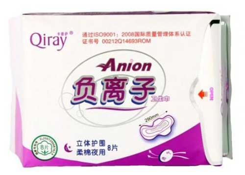 其中一款内地出产的负离子卫生巾。(图片来源于网络)