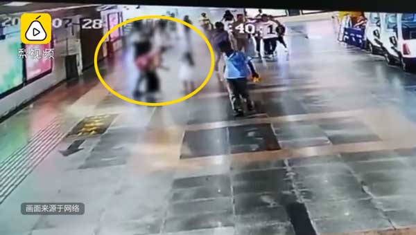 2019年7月28日,西安,一对婆孙在钟楼地下通道行走,一男子突然持刀砍向他们。路人挺身相护,一旁治安巡逻车里的三名警察迅速将男子控制。目前,受伤婆孙已送医。警方通报称,嫌疑人有精神病史,案件调查中。