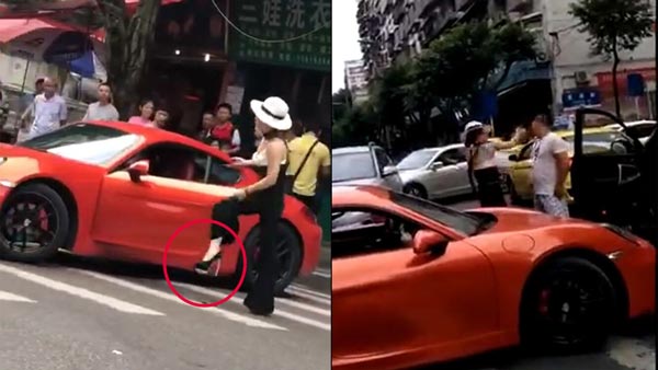7月30日,重庆渝北,一女子开红色保时捷在马路上调头时与另一辆车男司机发生争吵。两人争吵时互扇耳光。警方通报:女子驾车未按规定掉头,罚款200元,驾车带帽、穿高跟鞋等妨碍安全行车的行为,扣2分,罚款50元。