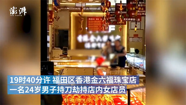 原标题:深圳24岁男子持刀劫持金店店员