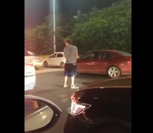 实拍青岛一老外大马路方便的哥拦都拦不住视频