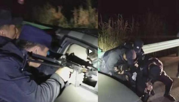 实拍安徽30多民警持枪围堵运毒车砸窗抓人视频