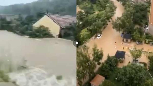 实拍山东临朐全城内涝居民叹像在海边视频