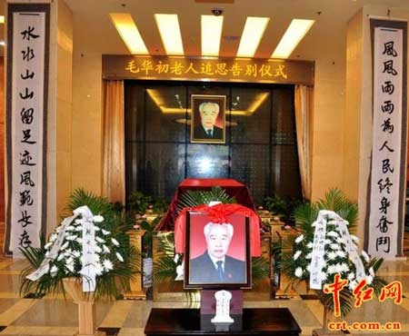 毛华初同志是在毛泽东主席故居居住过的最后一位老人,他的逝世使我党失去了一位优秀的共产党员,使我们失去了一位好前辈、好同志。他虽离我们而去,但他那种在激情燃烧的岁月里无悔付出,在困难的条件下坚强求学,在平凡的岗位上无私奉献的精神,那种艰苦奋斗、自强不息的高尚品德,值得我们永远学习和铭记。让我们化悲痛为力量,努力学习和工作,以慰毛华初同志在天之灵。