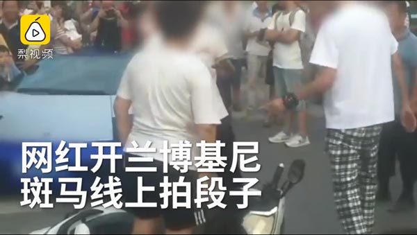 实拍郑州一抖音网红开兰博基尼占斑马线拍段子现场视频