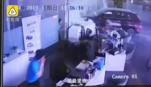实拍江苏男子试驾错把油门当刹车直接冲进4S店视频