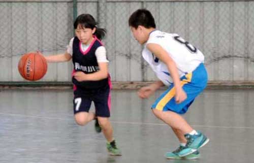 虽然范蕊雅个子不高,但是她控球的能力却非常惊人,在比赛中他的对手和队友们大多是男孩子,其中不乏身高马大者,但范蕊雅的表现却极其抢眼。快速推进,背后运球,胯下,提前变向,她熟练得使用着各种运球技巧,在一次突破时,甚至还晃到了一个防守她的男同学。