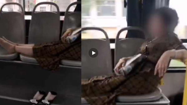 实拍兰州大妈把公交当卧铺脱鞋斜靠占3座视频