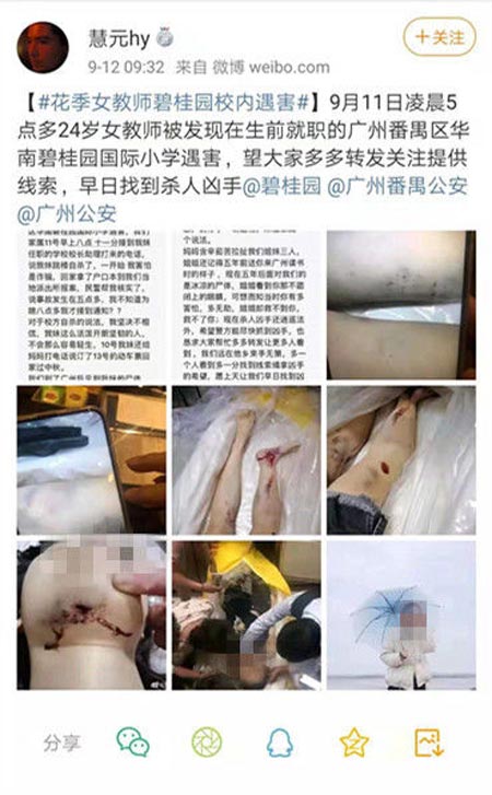 9月12日,荔枝新闻接到线索,广州番禺区华南碧桂园国际学校一名24岁女教师在学校宿舍楼坠楼身亡,目前警方已经介入调查。