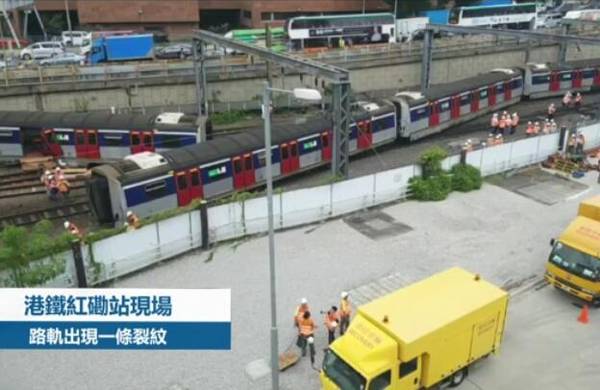 原标题:港铁红磡站一列车脱轨致8人受伤 路轨出现裂纹