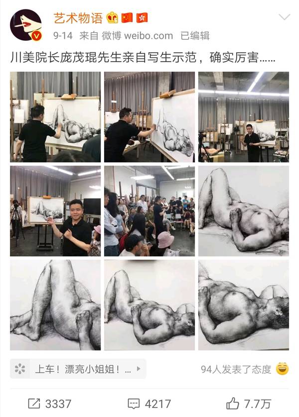 近日有个微博上的艺术账号上传了一组大学美术课堂的教学图片,图中有正在上课的师生,也有教师画的人体图,并配文:“川美院长庞茂琨先生亲自写生示范,确实厉害”。但是和这组图一起火了的还有下面的一些评论,有人认为应该盖住裸露的部分,在互联网上传播不好;有的人开始质疑美术教育是否一定要画裸体。支持者和反对者让这件事的热度越来越高,这是让人始料未及的。9月17日,有媒体报道,照片里的当事人,四川美术学院院长庞茂琨回应称人体写生很正常,对部分网友的心态感到不可思议。