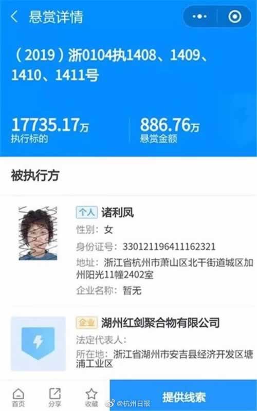 【女子欠钱1.77亿 杭州法院#朋友圈悬赏886万抓老赖#】刷朋友圈时,会看到汽车广告、房产广告,但最近,杭州江干区人民法院却用微信小程序投放了一条“老赖”广告。