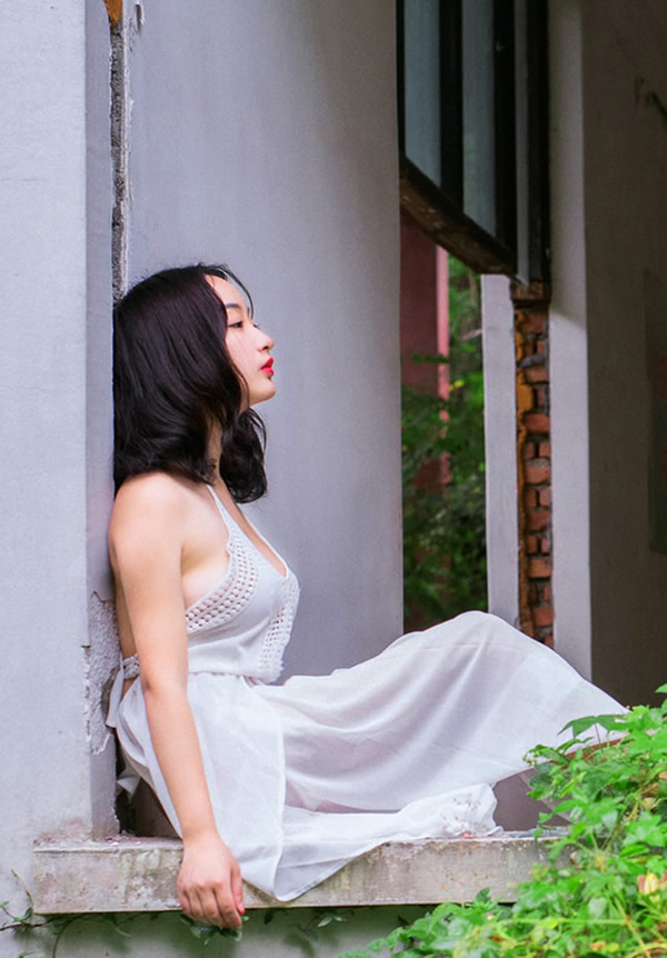 露背长裙女孩百合户外露出美艳人体写真