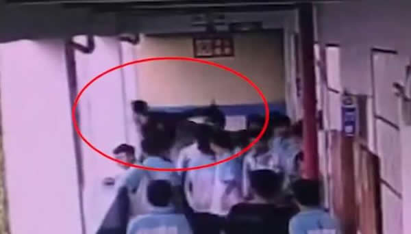 实拍广西安阳中学一男生将同学抱起扔下4楼现场视频