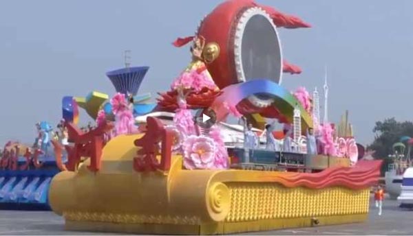 实拍中原工学院8女生河南彩车上扮花仙子视频