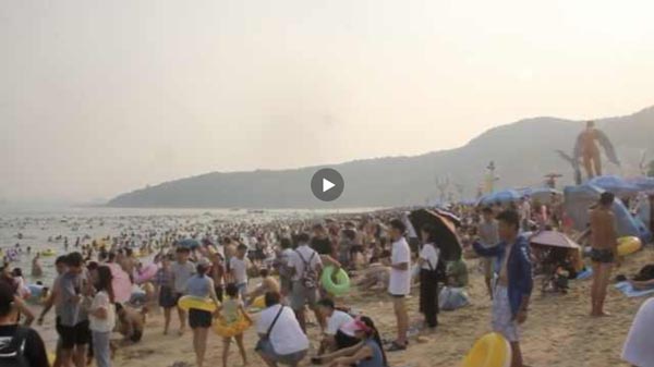 实拍深圳大梅沙游客爆满人多如下饺子视频
