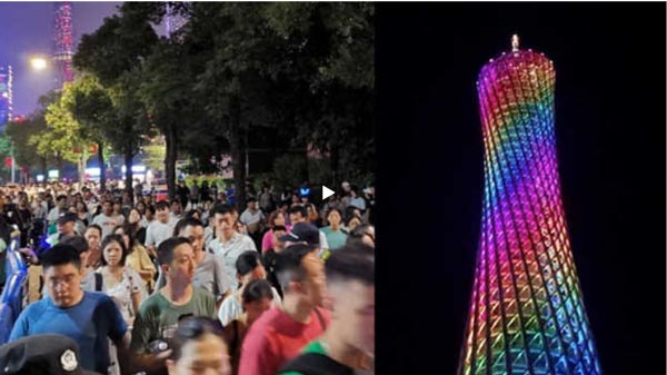 实拍广州塔超堵人山人海游客下午提前来等夜景视频