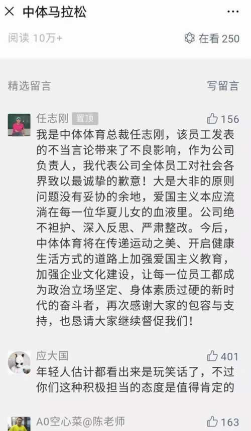 感谢广大网友、跑步爱好者对我司的关心和监督,对本次事件造成的不良影响,本司深表歉意,并将以此为鉴,加强内部管理和对员工的思想政治教育,杜绝类似的事情发生!在公司赛事、活动中树立正确的价值观,希望广大网友、跑步爱好者继续关心支持我司,谢谢!