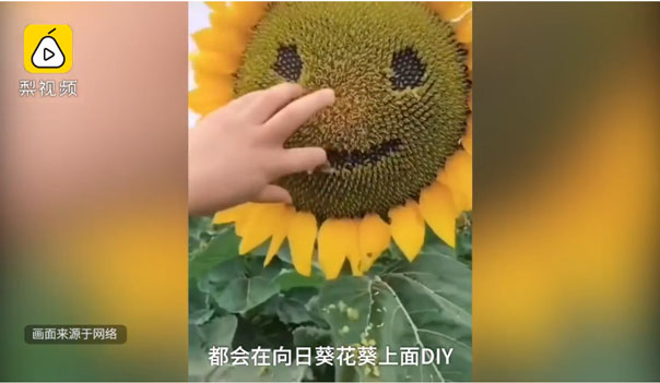 近日,安徽黄山蜀源村百亩向日葵绽放,吸引到许多游客前来游玩打卡。有人搞起“创意摄影”,在向日葵花葵上抠出笑脸、挖出爱心,还发朋友圈炫耀。当地村委会工作人员称,发现类似行为会制止,希望游客文明赏花。