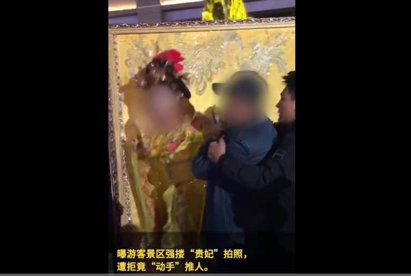 实拍西安一景区老人强搂贵妃拍照遭拒后推人视频