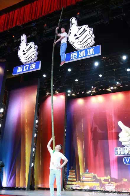 其中来自于“中国杂技之乡”——孙龙村的一对叔侄所带来的竹竿表演。只见侄子竖起竹竿扛在身上,叔叔以迅雷不及掩耳之势爬到了竹竿的顶端,随后做了一个空中一字马。紧接着右手缠在竹竿上,右脚踩到下一节,整个人成“大”字开始左右摇摆。没想到就在此时,竹竿竟然“咔嚓”一声折断,全场都被这突如其来的意外吓到,评委们更是目瞪口呆。现场顿时一片哗然。见此状,叔侄俩强烈请求再给一次机会,评委们为其诚心感动,最终他们如愿以偿!