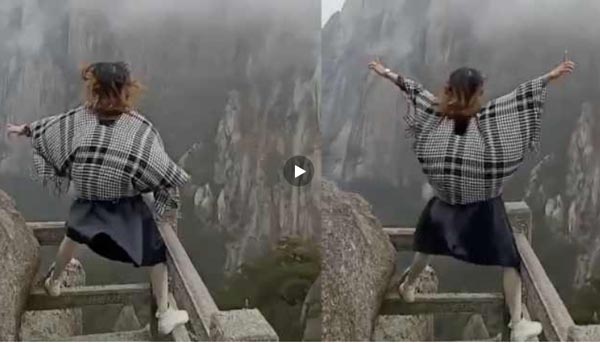 安徽黄山,一女游客站在一处悬崖边的石质围栏上凹造型,还拍视频发抖音,网友惊呼太危险,别用生命开玩笑。景区工作人员表示,事发地不是定点巡逻点,如果有巡逻人员看到肯定会制止。在此提醒,出游切记安全第一。