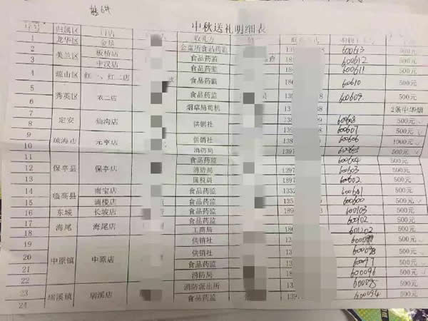 “被送礼”的人,多为供销社主任、食品药品监督管理所所长、税务局领导等。