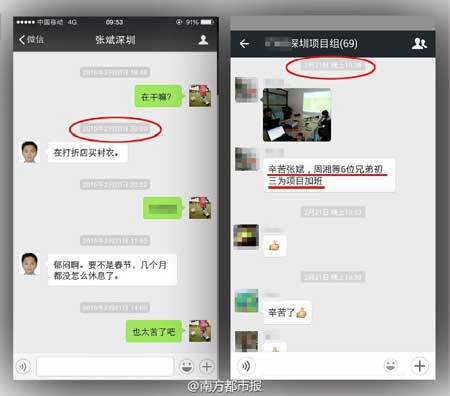 闫女士提供的微信记录以及邮件截图显示,张斌经常直到凌晨还在讨论工作,下班后只能吃路边的麻辣烫或者24小时营业的肯德基。最后一封邮件的发送时间是3月24日0点56分,标题为“重要紧急———B133版本没有通过华为T R5验收”。