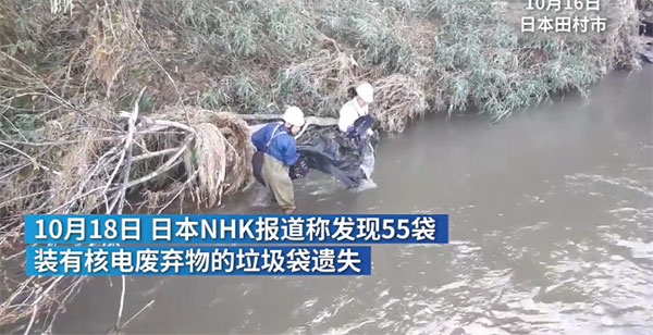 10月18日,日本NHK报道称发现55袋装有核电废弃物的垃圾袋遗失。垃圾袋原先存放于福岛县四个地方,受台风影响被水冲走。其中10袋垃圾袋发现时,内容物已经遗失。