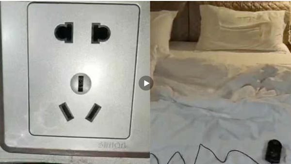 实拍夫妻酒店亲热后发现插座竟藏偷拍摄像头视频