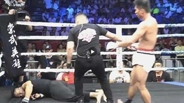 实拍咏春大师丁浩74秒被爆头KO倒地昏迷不醒视频