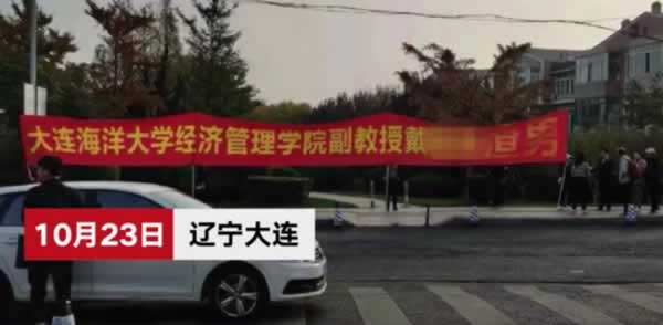 大连海洋大学:针对10月23日学校门口戴XX老师条幅事件,经查明,该事件源于个人家庭纠纷所致,与学校师生无关,公安部门已经介入调查与调解,特此声明!感谢大家的关心与关注!
