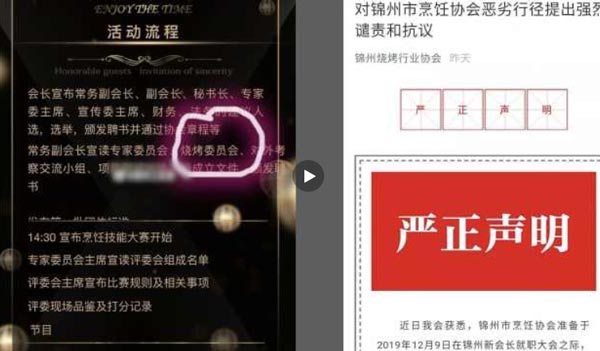 近日,辽宁锦州市烹饪协会发文称即将成立烧烤委员会,并表示要举办技能大赛,开烧烤行业高层论坛等。对此,锦州烧烤行业协会发文谴责和抗议,认为烹饪协会成立烧烤委员会将损害锦州烧烤的发展,是在夺利。