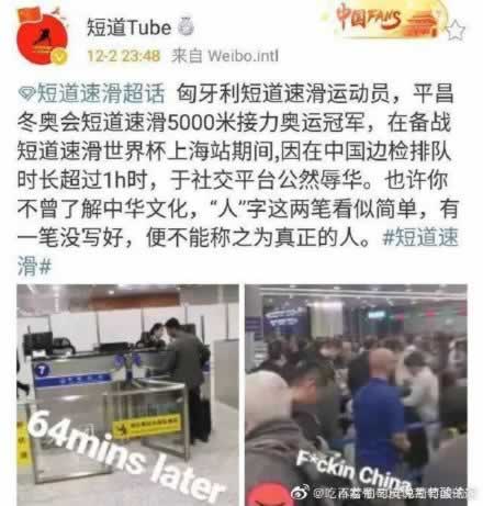 昨天晚上,体育圈又爆出大事件,本来要来上海参加短道速滑比赛的匈牙利短道速滑队员塞萨巴因为在机场入境边检时间太长,在其个人社交媒体上发表辱华言论。在获悉这一情况后,匈牙利短道速滑队中国教练张晶第一时间提出抗议,并愤怒地辞职,要求匈牙利滑冰协会作出解释和处罚。