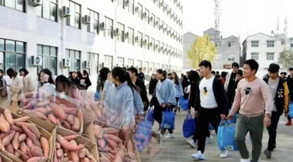 实拍河南商丘职校给3千师生免费发红薯每人20斤视频
