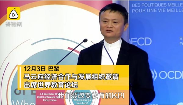 12月3日,马云在巴黎世界教育论坛上表示,中国的高中生不知道为什么去大学。文凭只是你爸给你交学费的收据,真正的文凭是你在生活奋斗中得来的。阿里招人不取决于你是哈佛还是MIT,要看你愿不愿意创造。