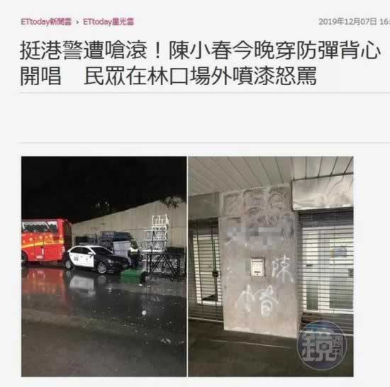 “东森新闻云”报道说,陈小春今晚穿防弹背心开唱。“东森新闻云”报道说,陈小春今晚穿防弹背心开唱。
